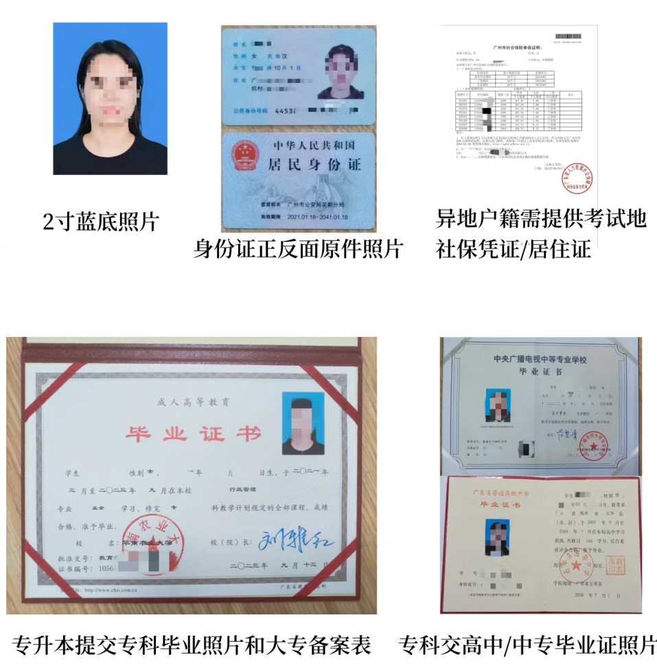 考生須準備兩寸白底或兩寸藍底電子證件照。注意系統會自動將證件照和身份證照片進行比對,不是同一個人無法通過審核。
